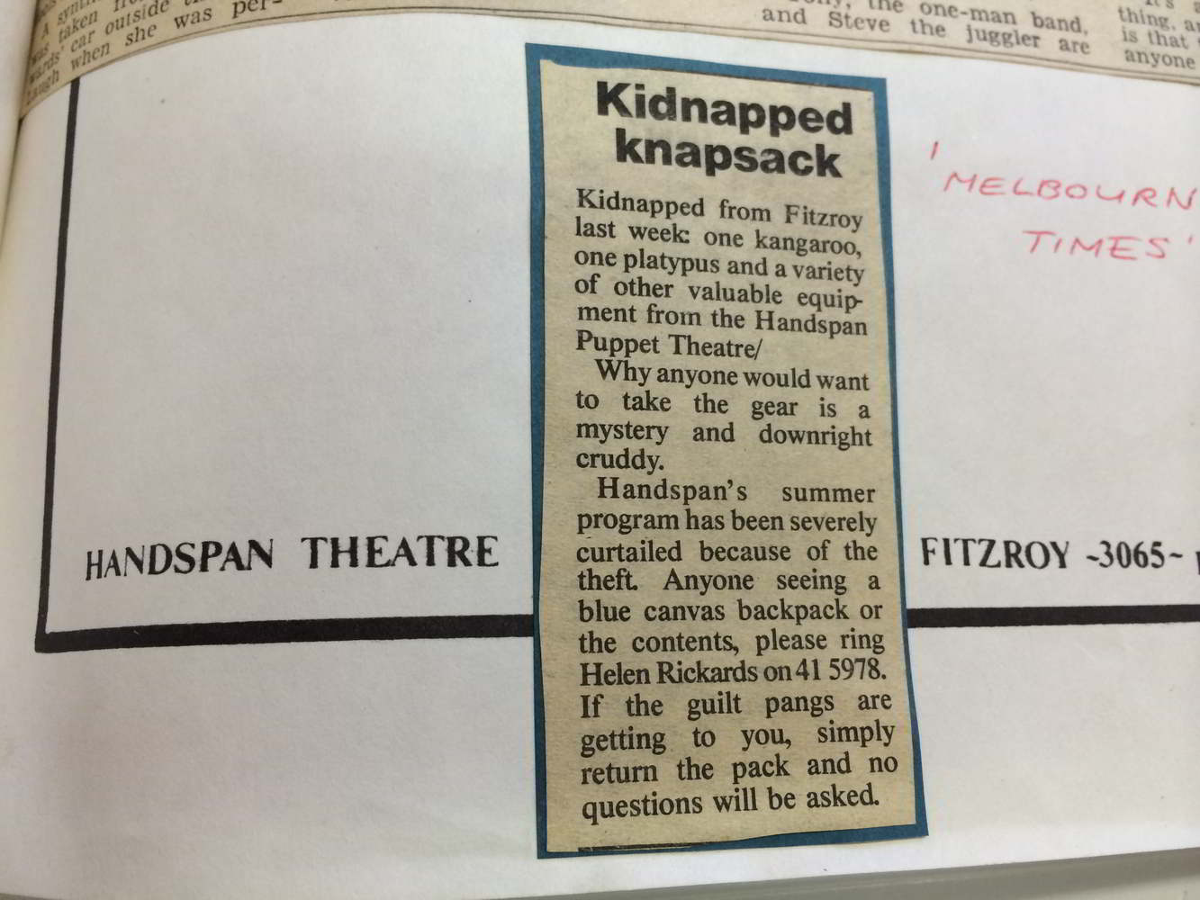 Handspan's adaptation was designed to tour in a small van and play indoors or outdoors. It toured until 1982, travelling to schools, festivals and community events in Australia and abroad.