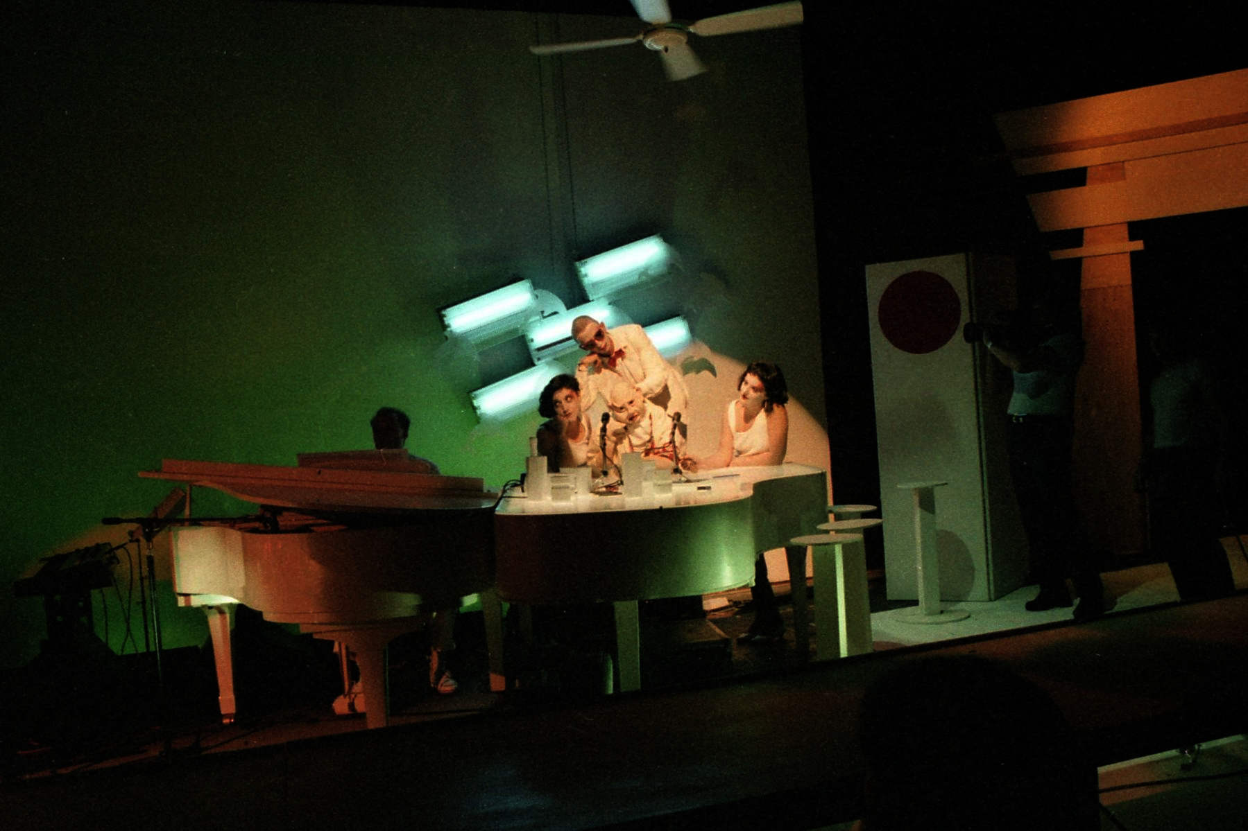 Cho Cho San played a four-week season in an intimate performance space at the Universal Theatre, Fitzroy. The set occupied the long side of the rectangular room and performers and musicians shared the stage.