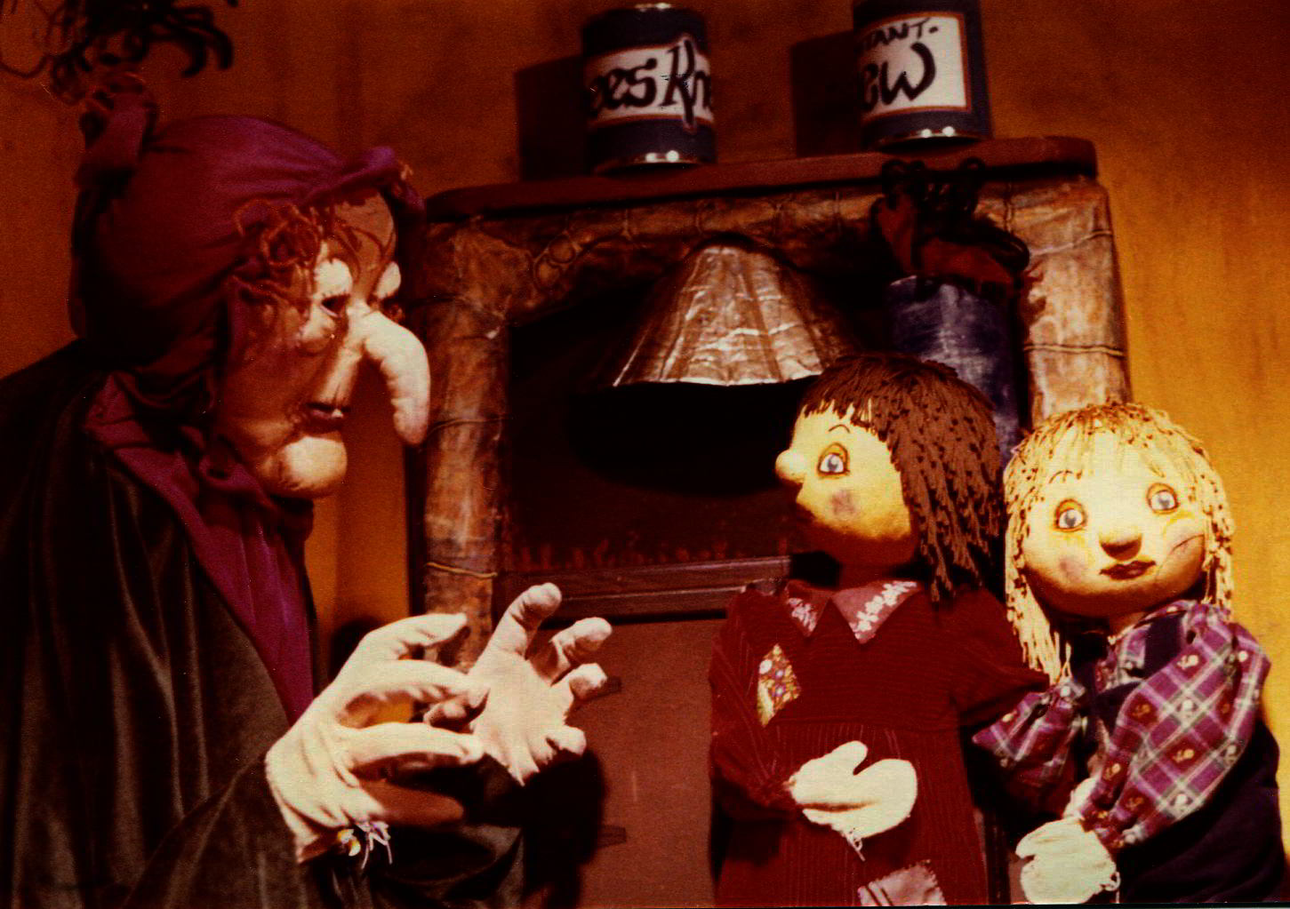 The second iteration of Hansel and Gretel was more portable and the fourth wall gave way to no walls. It played in non-theatre spaces using just a few puppets and objects, augmented with audience participation guided by a narrator.