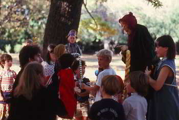 Handspan Theatre's first production. Devised by the ensemble with a music soundtrack by Uncle Bob's Band and designed for children in a theatre restaurant setting. Dialogue was taped and the performance took place in an open booth flanked by papier-maché trees.