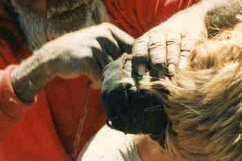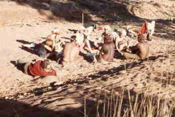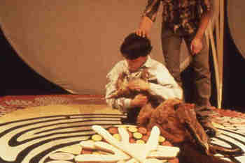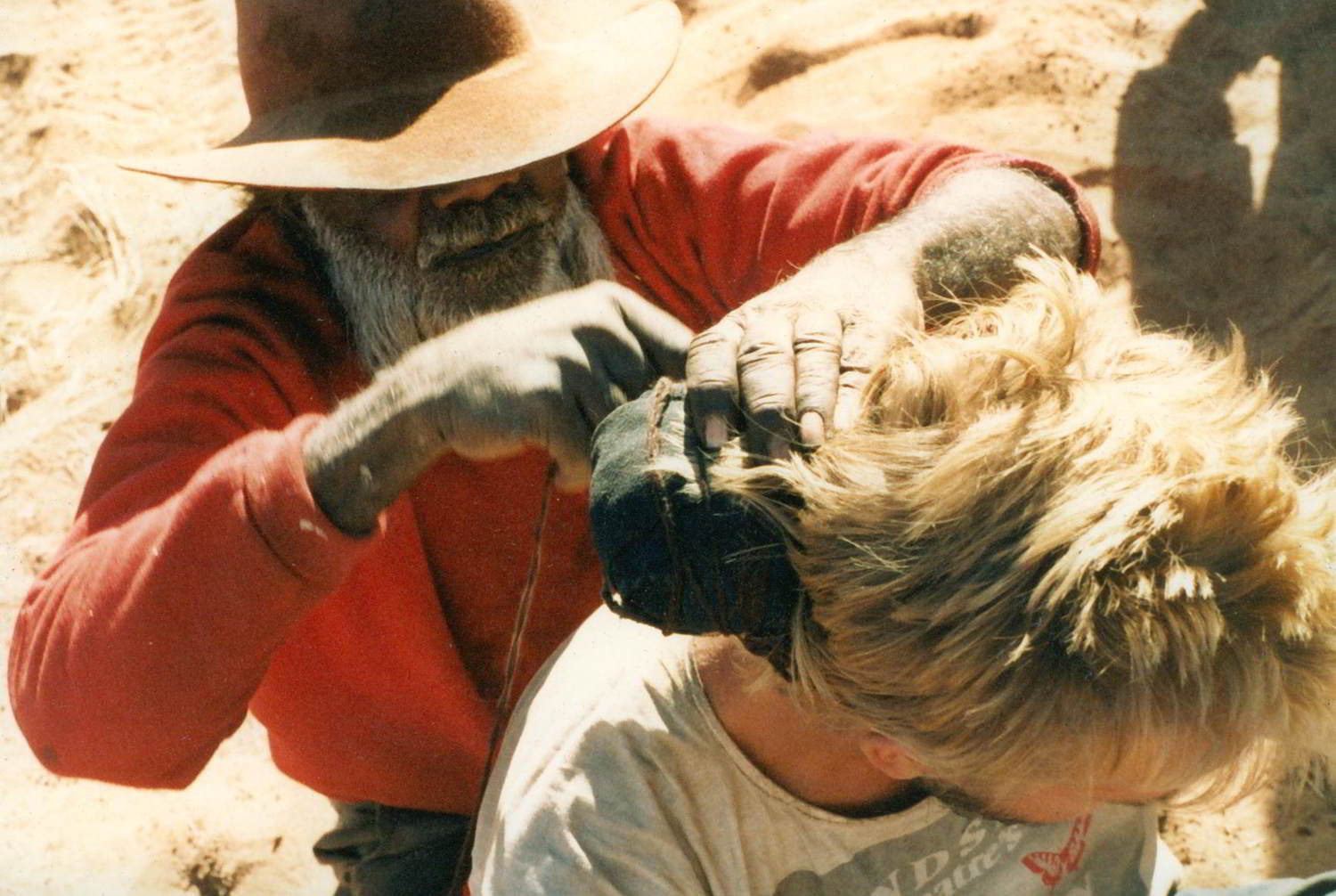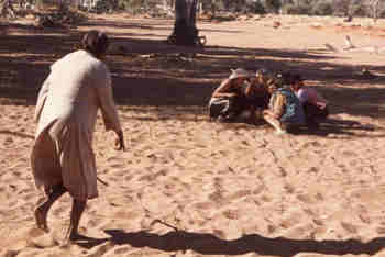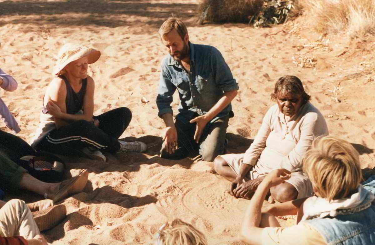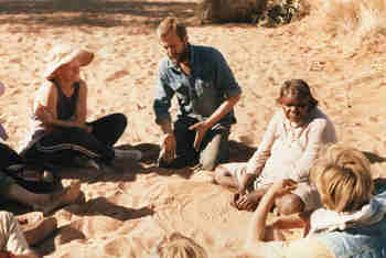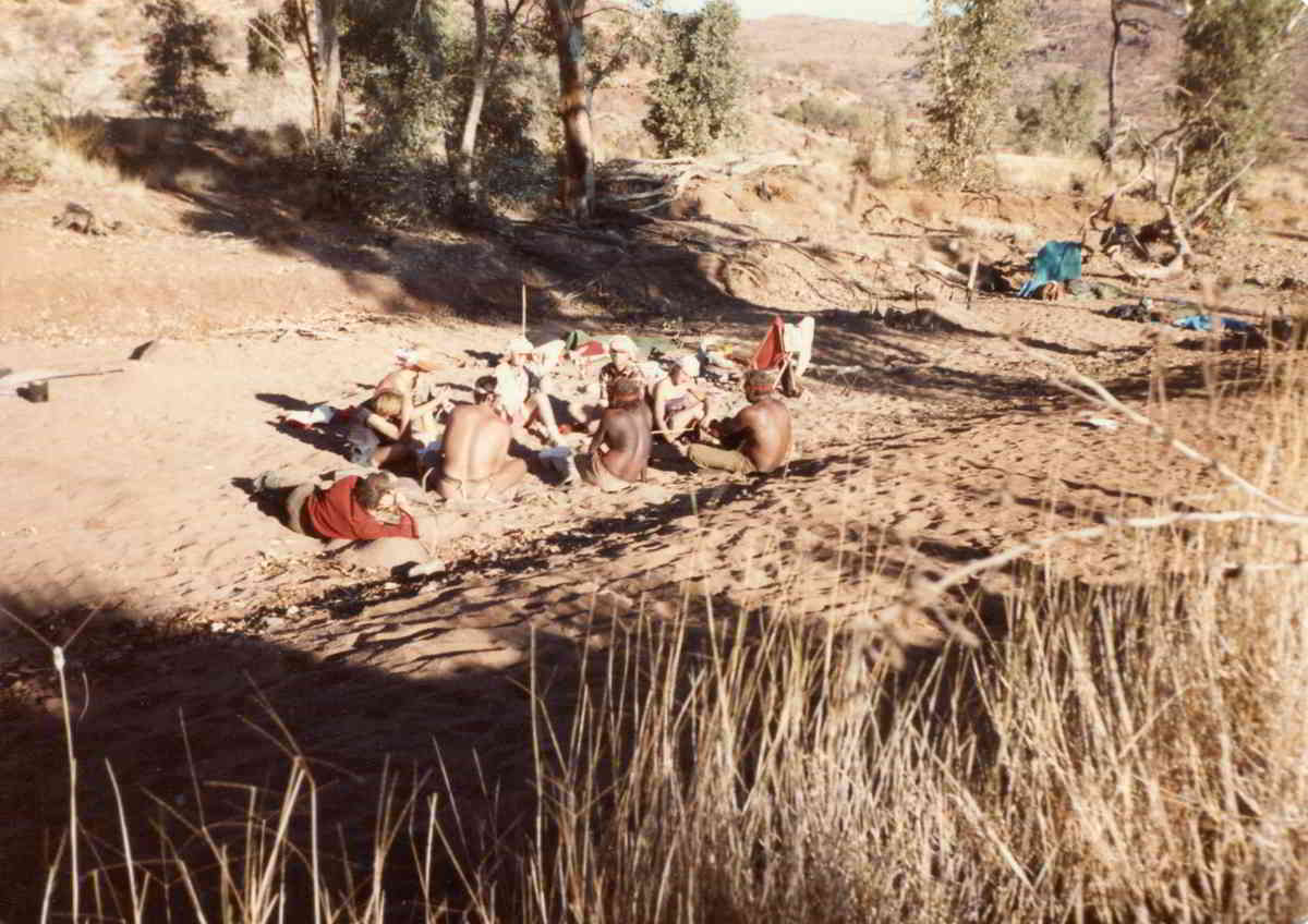 Development of The Haunted commenced in June 1985, when Handspan Theatre travelled to the Central Australian Desert for a cultural exchange residency with the Anangu community at Anantja Outstation. For two weeks Handspan and the Pitjantjatjara Anangu met to share stories and experiences.