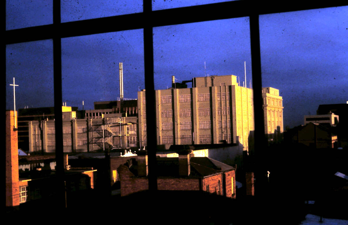 Through the building's top-floor windows company members could take a breather from work and contemplate the clouds, the city, the changing light and weather patterns - and occasionally witness extraordinary events. In 1981 multiple helicopters thundered past, circling Fitzroy's rooftops and hidden byways, protecting the Commonwealth Heads of Goverment Meeting (CHOGM) at the Royal Exhibition buildings nearby. In January 1983 the dust cloud that rolled into Melbourne from Victoria's northern plains was a spectacular, if eerie sight.