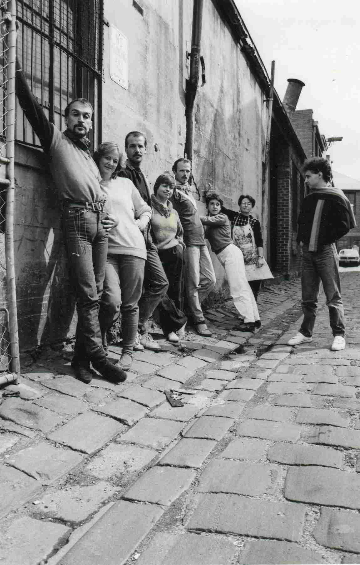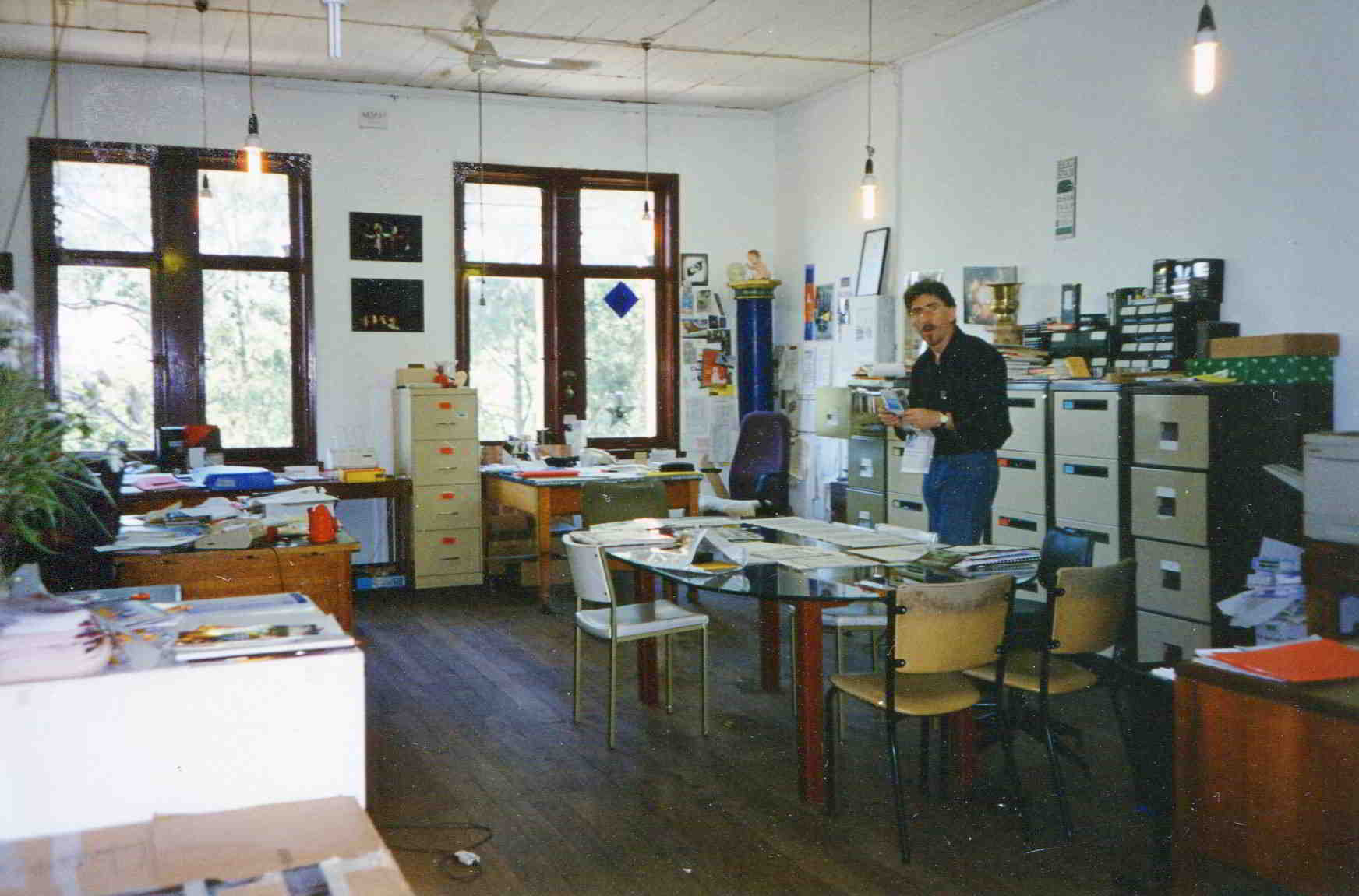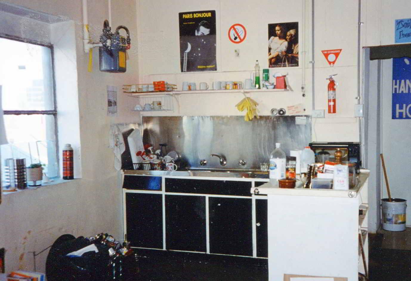 The space at Gertrude Street was decrepit and unfurnished when the company moved in, but the Handspan cohort laboured with energy and enthusiasm to paint and partition the third floor space into workshop, office and a black rehearsal studio. Equipment and furnishings came from garages and junk stores. A blood-stained bread knife was unearthed from a hidey-hole on the stairs, washed and then used in the kitchen for years. Asphyxiation was narrowly averted during the building and installation of a fiberglass workshop sink and the refurbishment of the darkroom.