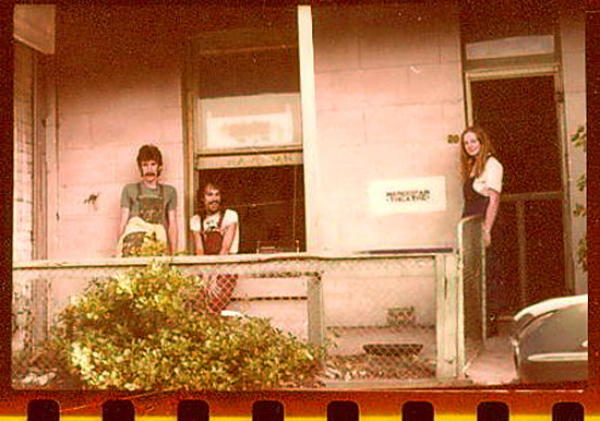Initially, the company took over the spare rooms and living rooms of members share houses. Construction materials and tools encroached into hallways and porches, and recording sessions blared into the night. Friends were supportive, moving tables and chairs to accommodate recording desk and microphones, borrowed from other friends, and adding critical commentary to scene rehearsals conducted behind couches and cupboards.