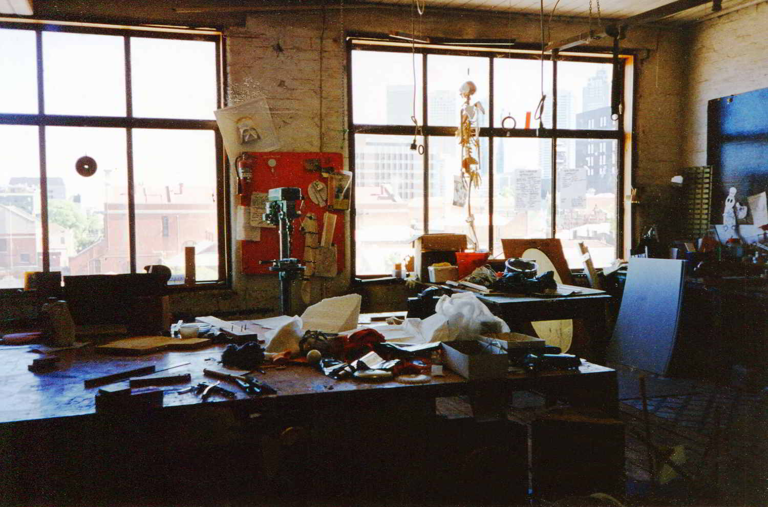For a while rent was shared with freelance designers Laurel Frank and Trina Parker, who each had a bench in the workshop. When Handspan wasn't in rehearsal the black studio was hired cheaply to colleagues and small companies - magicians, puppeteers, theatre-in-education troupes, performance artists and students - to rehearse their projects. Visiting puppet makers borrowed space and tools in the workshop where techniques were exchanged, problems solved and emerging artists mentored.