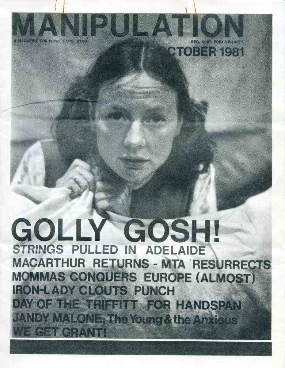Helen Rickards as Jandy. Cover of Australian Puppetry Magazine, Manipulation, October 1981