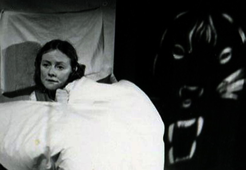 Jandy Malone and the Nine O'Clock Tiger, Handspan Theatre Jandy in bed frightened of tiger face looming behind her
