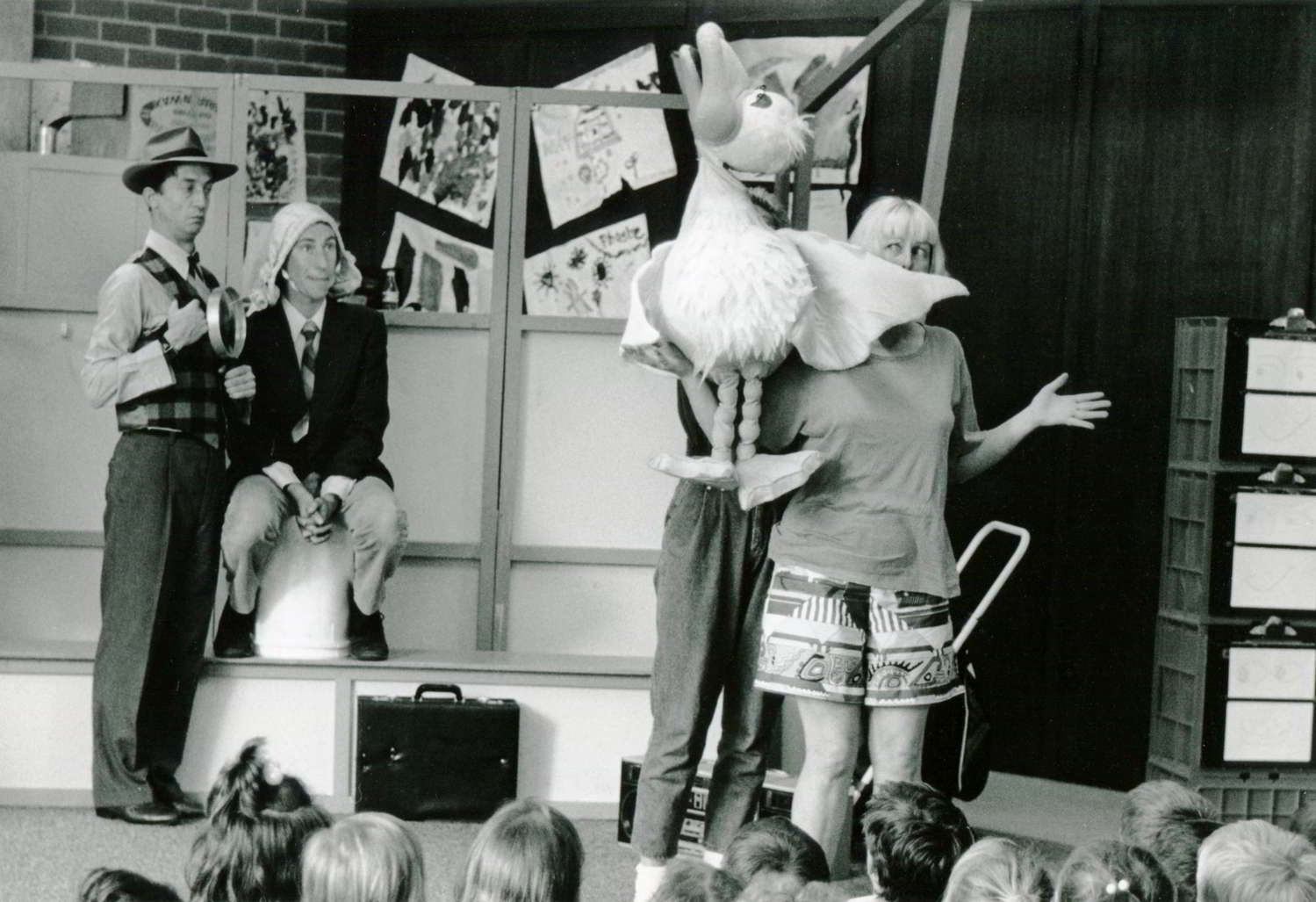 OUT FOR A DUCK was performed in Melbourne metropolitan schools and at community events from mid-1987 - early 1988 reaching more than 10,000 people.