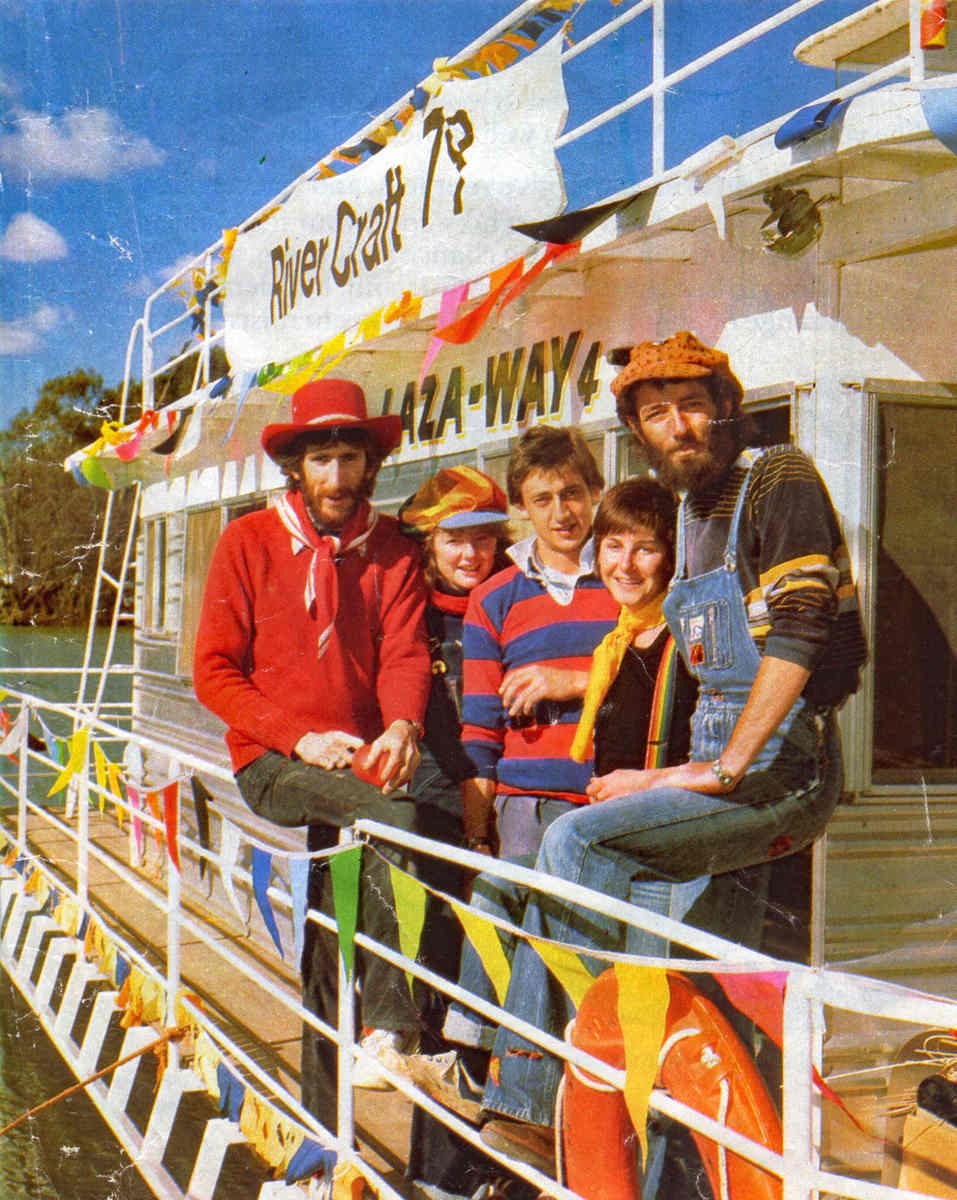 In 1979, participating schools and communities were closer to Mildura along the Riverbank and included Mildura Technical School, Christie Centre Special School, Dareton Primary, Buronga Primary, Gol Gol Public, Sunnycliffs Primary, Colignan Primary and Koorlong Primary Schools. The crew had another pair of hands on board to lead the daily riverbank puppetry and performance workshops.
