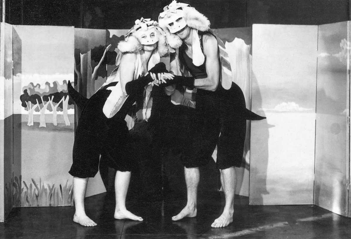 THE BUNYIP OF BERKELEY'S CREEK adapted by John Rogers and Tony Rickards followed Jenny Wagner’s storyline closely. The Bunyip appeared from his muddy creek, asking all who pased by: “who am I?”. Raucously laughing at him, the Kookaburra pointed out that he had feathers; the Platypus identified his fur; the Emu and Kangaroo squabbled over his tail and running ability; and the doctor wouldn’t listen. Fortunately for the increasingly woebegone Bunyip he met another of his kind and a happily-ever-after conclusion ensued.