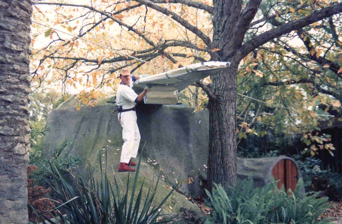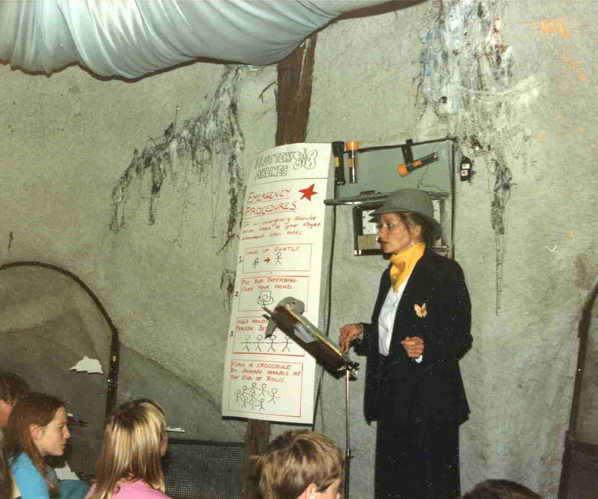 Philip Lethlean was Technical Assistant to the project and Handspan members assisted in its production and workshop sessions. Frank Ryan and his Zoo Education staff, in the role of Airline Stewards, led students from scene to scene and explained 'flight instructions' en route. ZES supplied research information, materials, resources and locations for the performance throughout the Zoo landscape. These included its hitherto little-used tree trunk tunnel which led participants into their interactive journey; the main zoo thoroughfares for a public puppet parade and behind-the-scenes workshop and garden area for performance settings and construction workshop settings.
