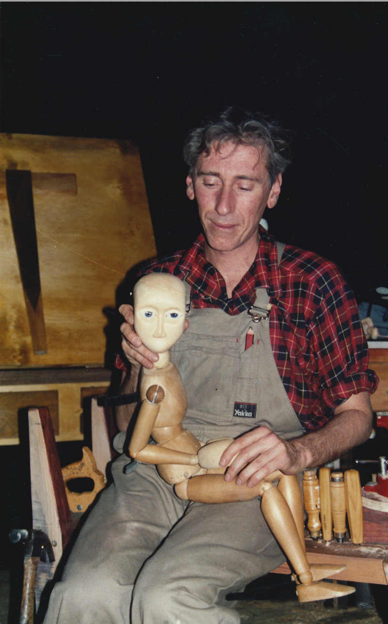 THE WOODEN CHILD production team included workshop assistant Kevin Berton, supported by the Schizophrenia Fellowship of Victoria's Work Rehabiliation Program. and a video of his successful experience working in Handspan's Gertrude St Studio to build the work was produced to support Vichealth's campaign message for 1990 - Schizophrenia - a treatable illness: