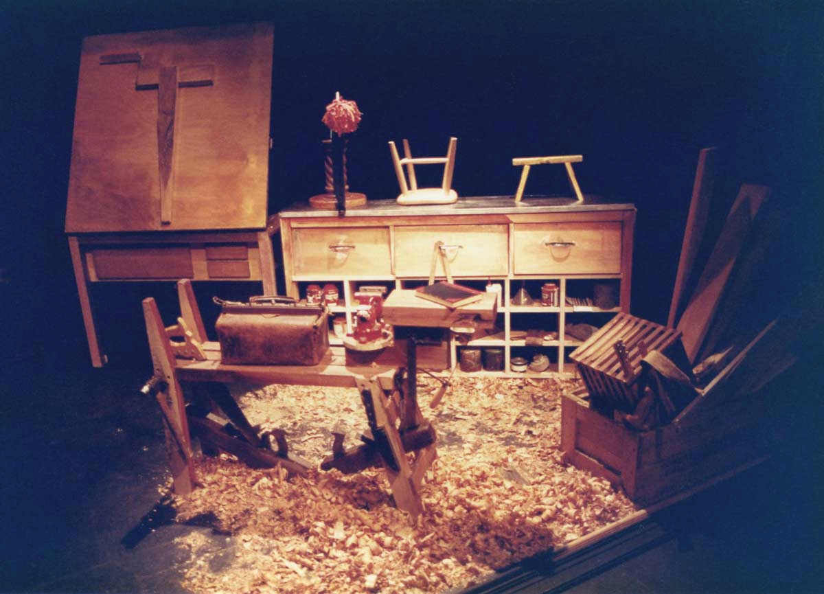 THE WOODEN CHILD was staged in black theatre on a full stage, and set in a carpenter’s workshop.